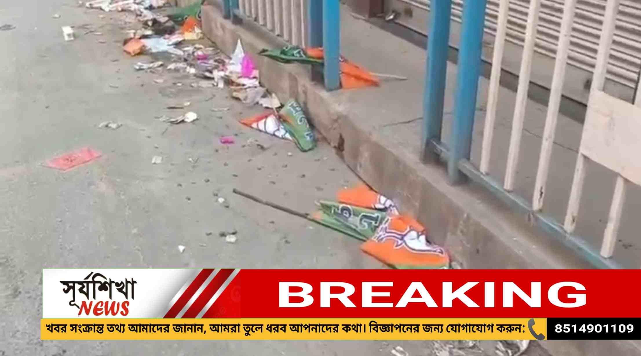 বিজেপির ফ্লেক্স - পতাকা ছেড়ার অভিযোগ বালুরঘাটেএই বাংলায়